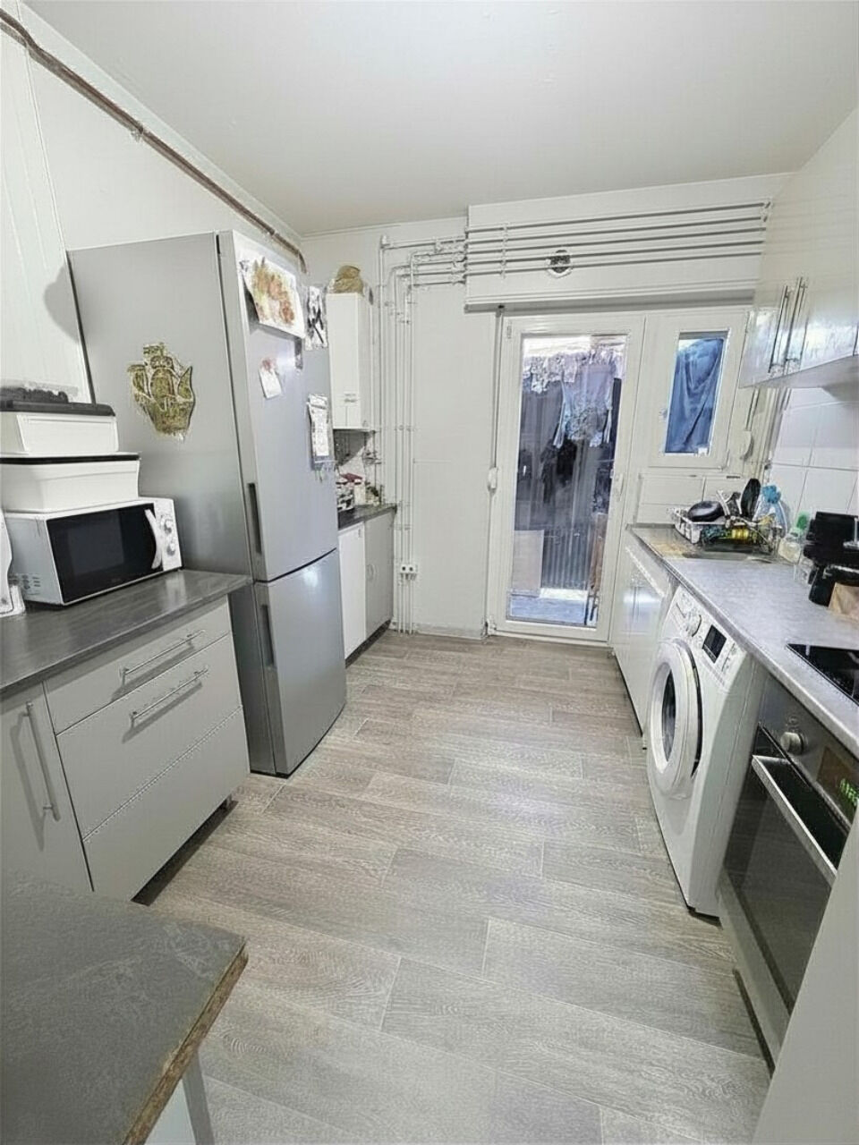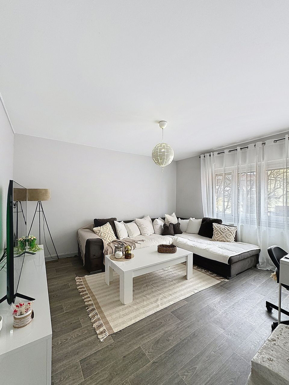 L'appartement se compose d'une cuisine donnant accès à une loggia, d'un lumineux salon, de deux chambres ainsi que d'une salle de bain (wc séparé).